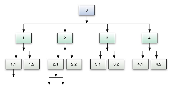 0 — главная цель — повысить производительность труда; 1 — изменить материальное стимулирование; 1.1 — совершенствовать системы и формы оплаты; 1.2 — совершенствовать систему премий и штрафов; 2 — создать систему морального стимулирования; 2.1 — создать ощущение причастности к коллективу; 2.2 — создать у работников ощущение стабильности и защищенности; 3 — изменить плановые нормы выработки; 3.1 — сделать «фотографии» рабочего дня; 3.2 — изменить организацию подготовительного и заключительного времени; 4 — внедрить новые технологии; 4.1 — заменить оборудование; 4.2 — произвести переобучение работников